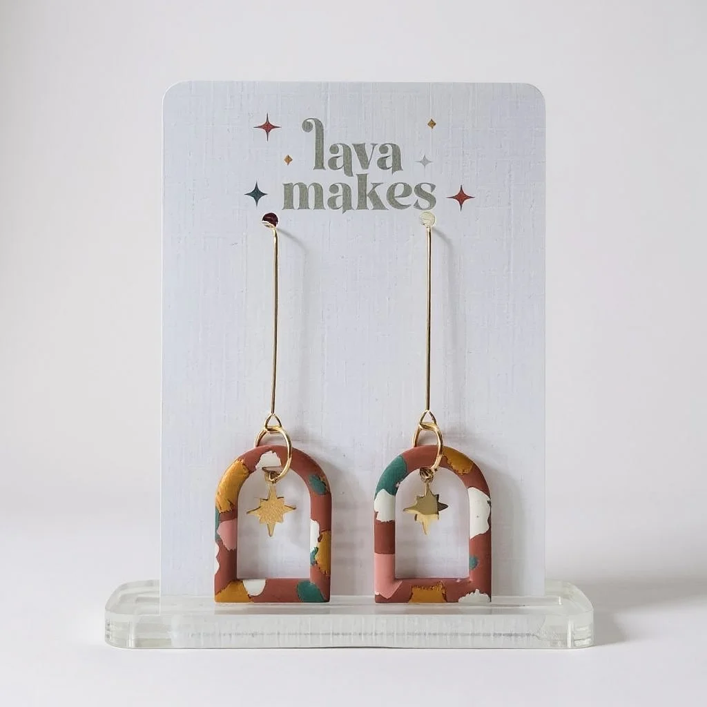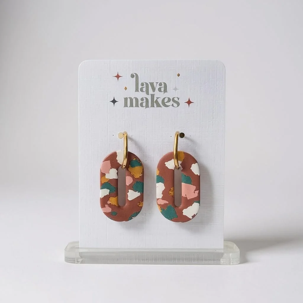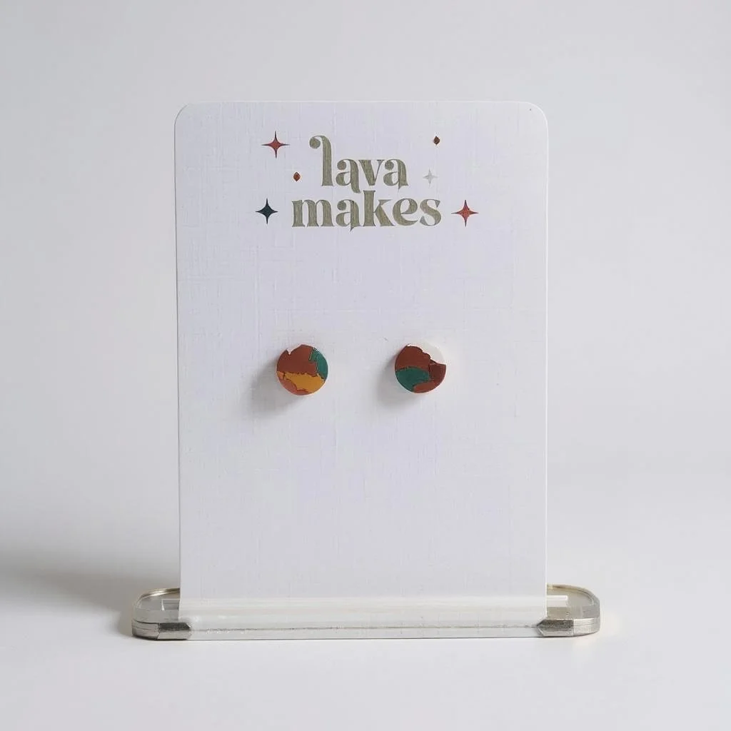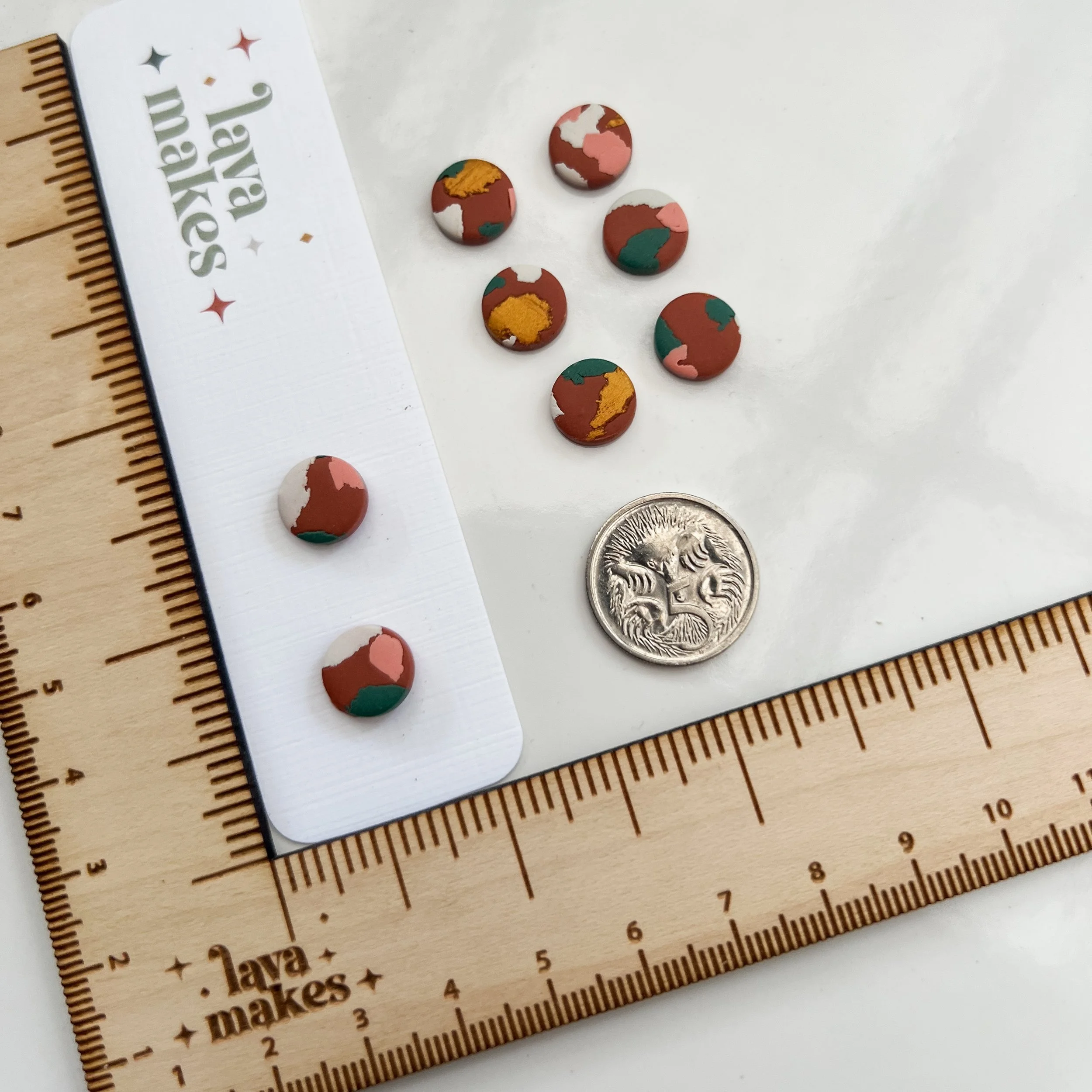 Abstract Terazzo Circular Studs in Burnt Terracotta