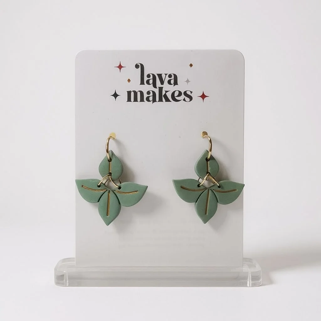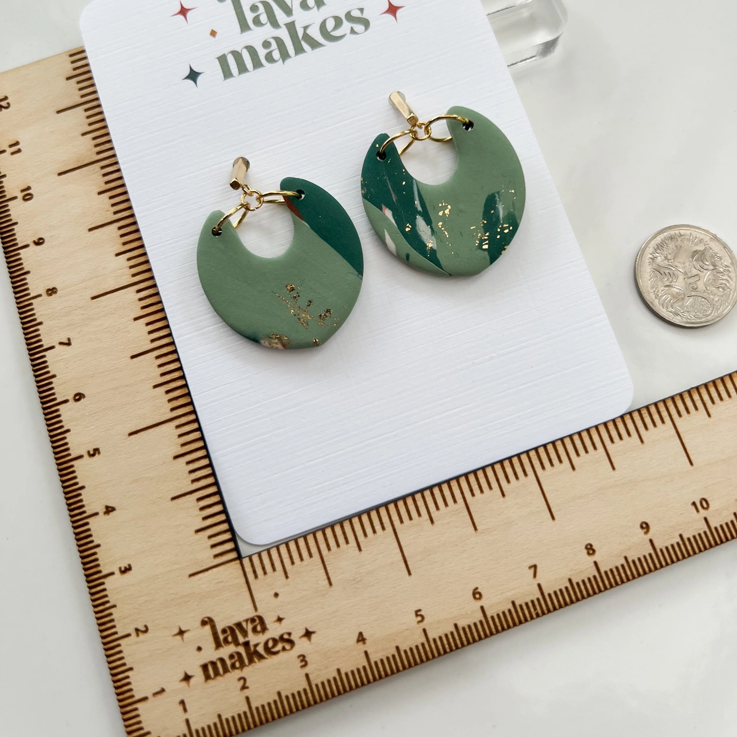 Simple Round Studs with Leaf Pattern in Mossy Meadow