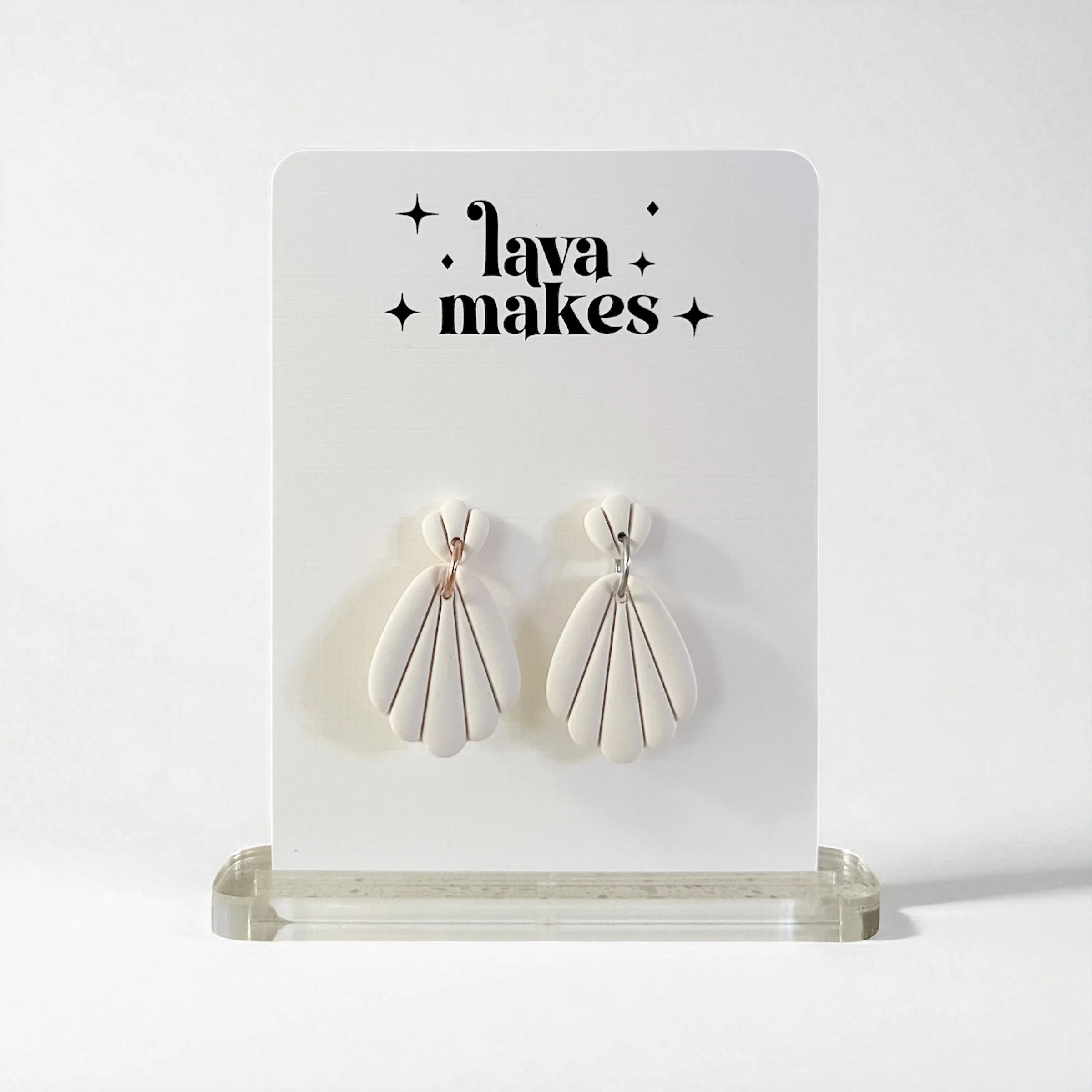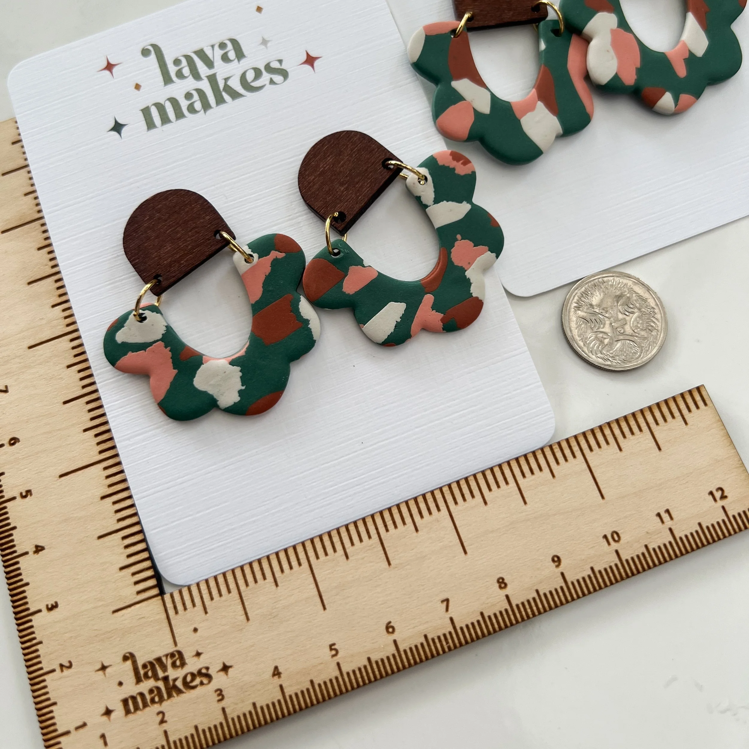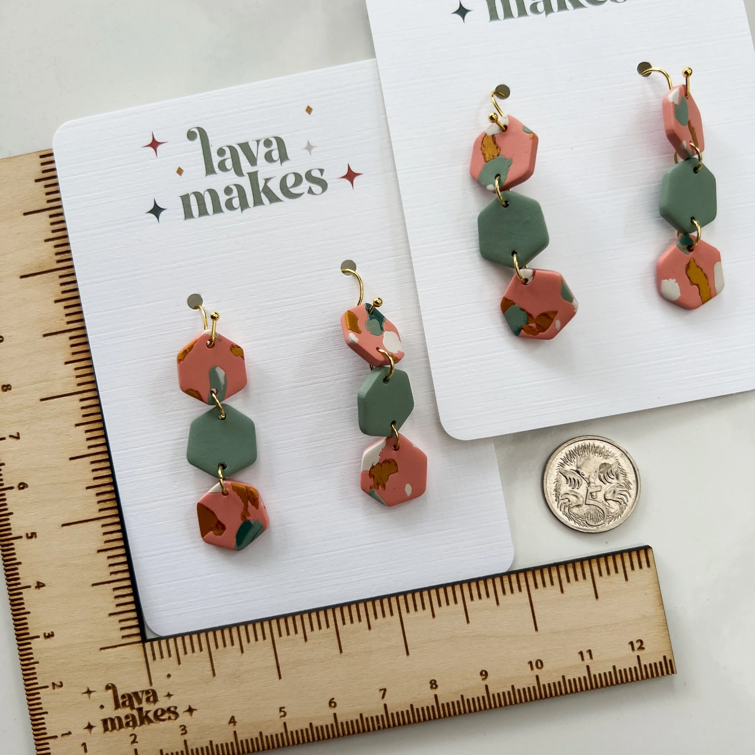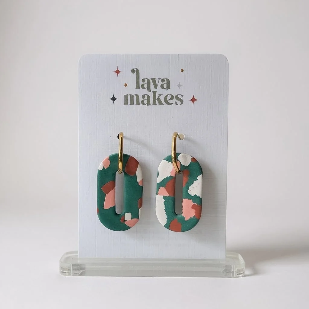 Abstract Terazzo Dangly Stud Earrings in Smokey White and Misty Sage