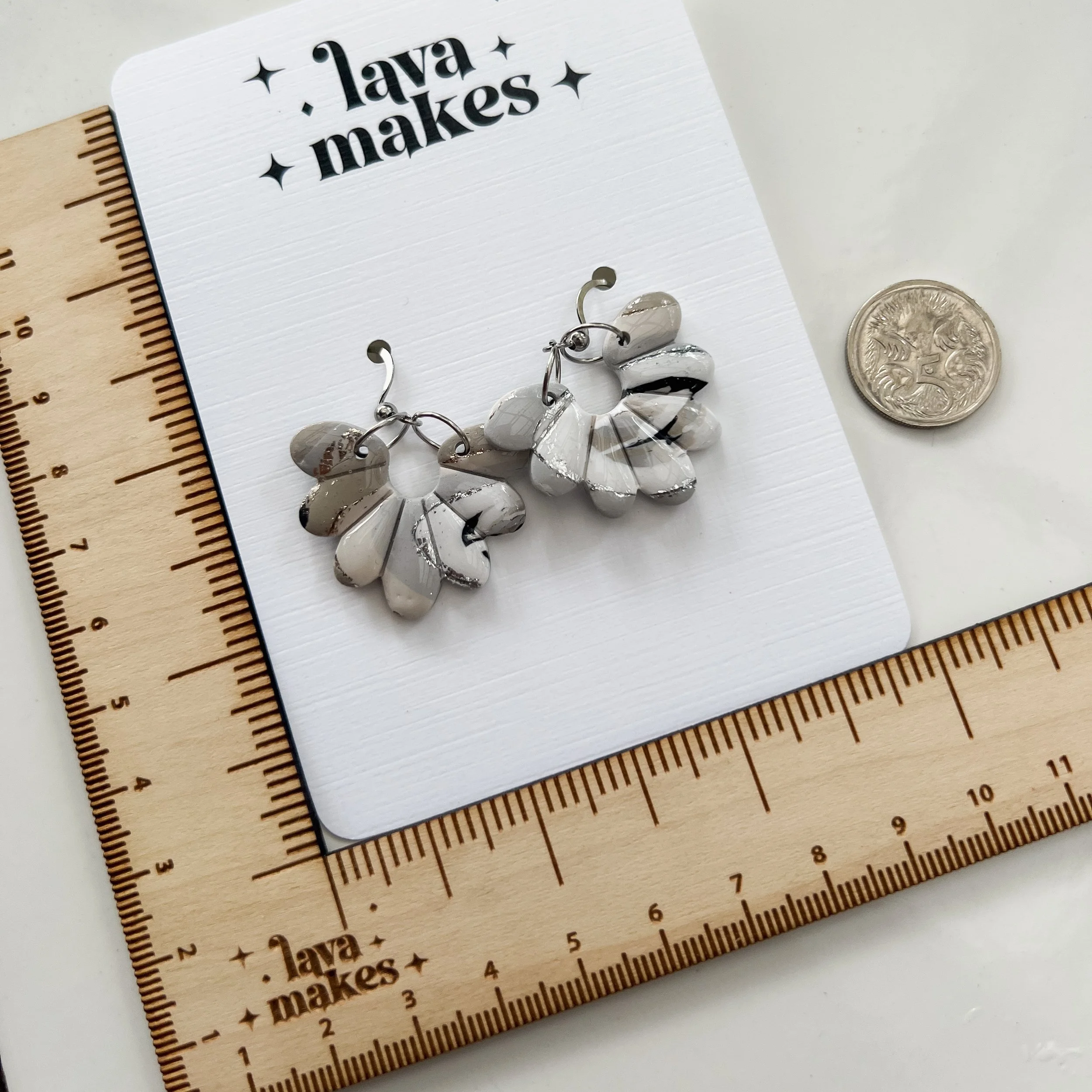 Abstract Terazzo Circular Dangly Stud Earrings in Smokey White