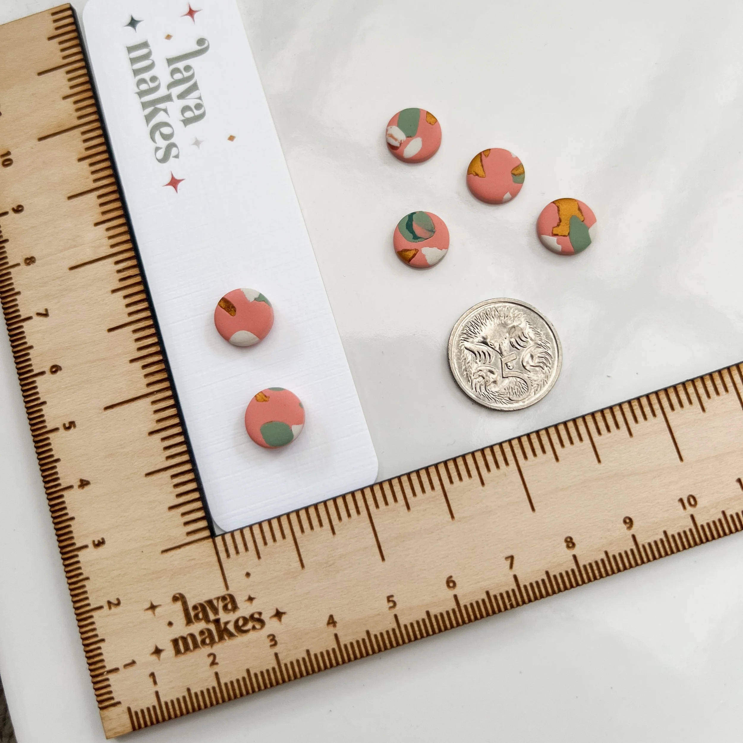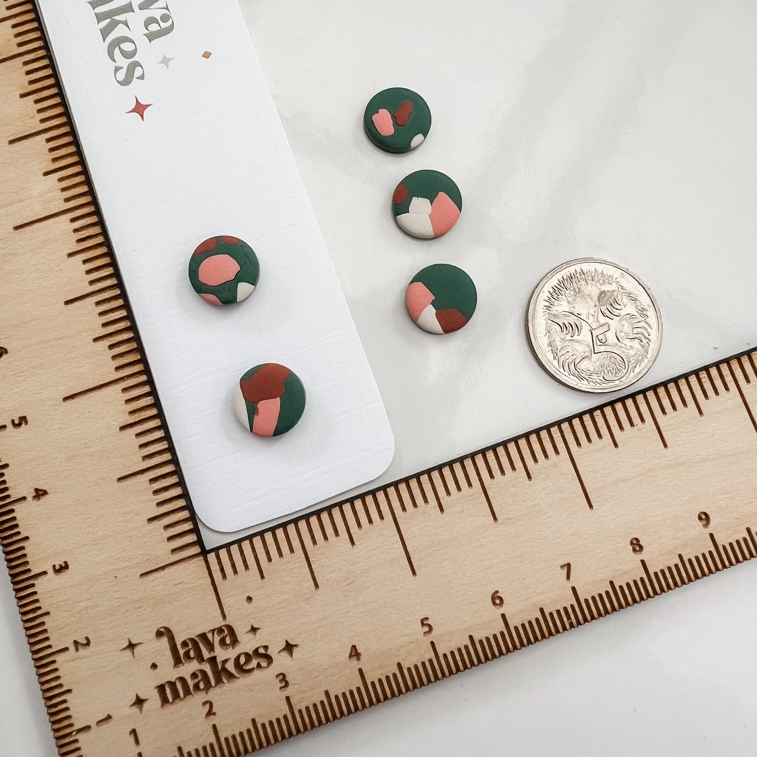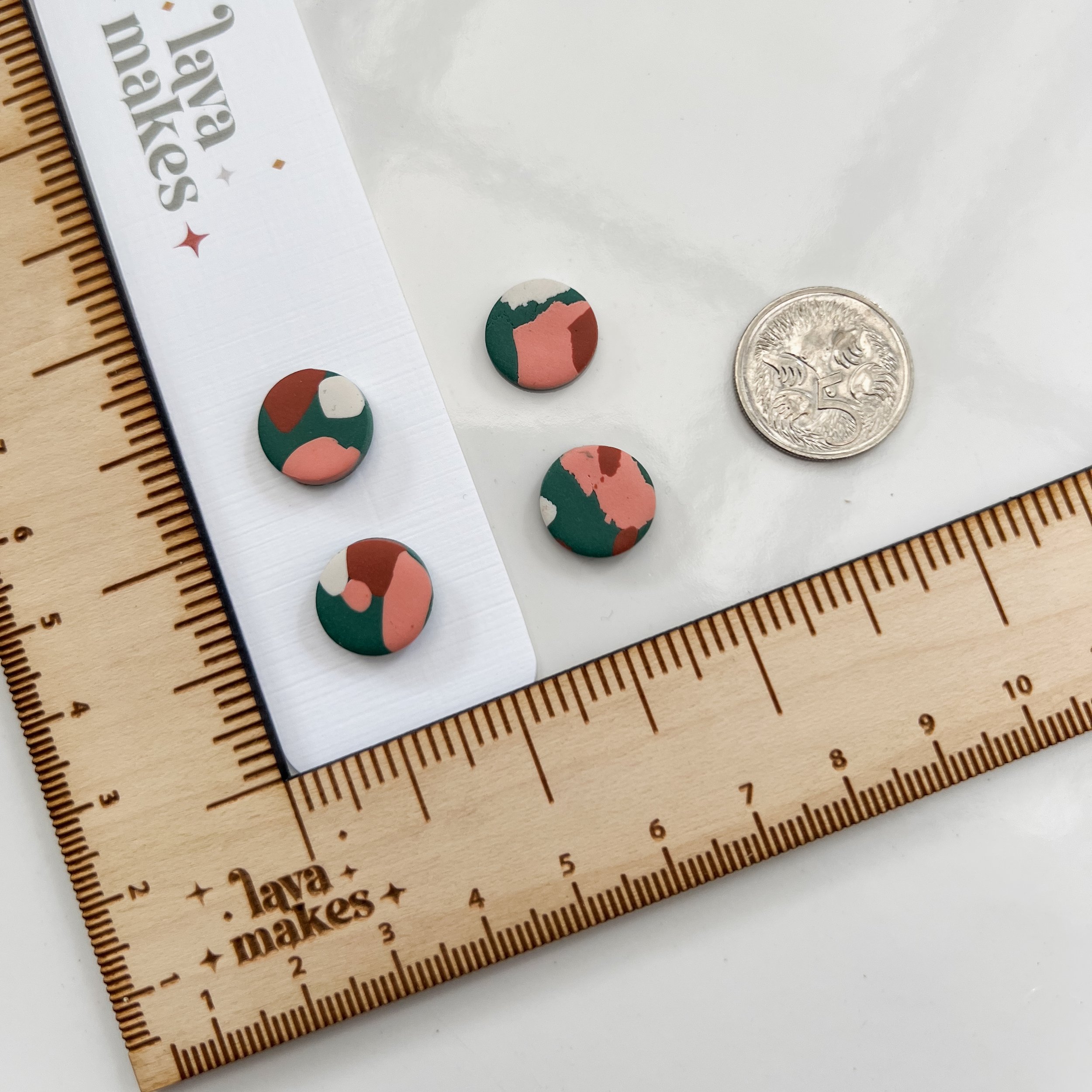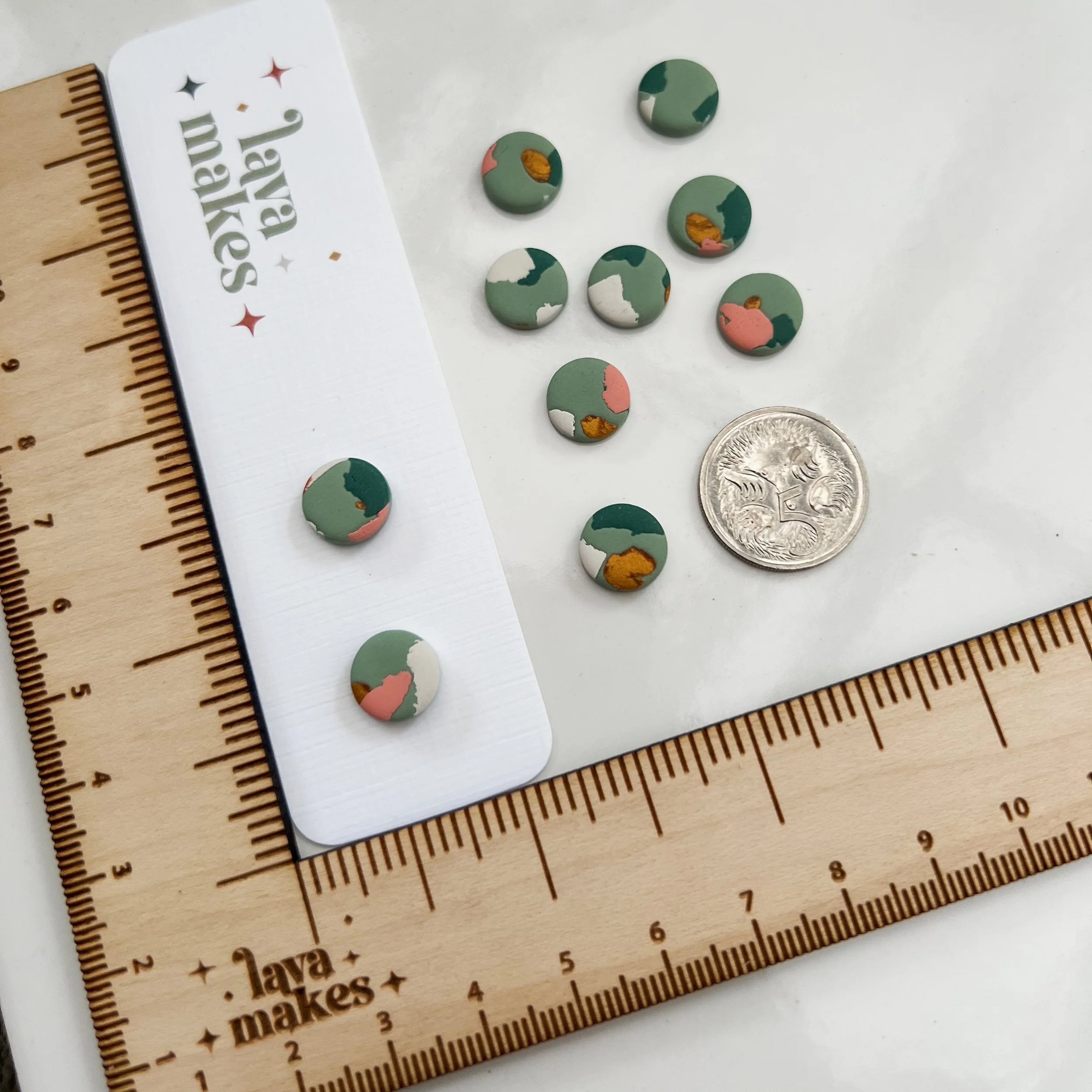 Abstract Terazzo Small Circular Studs in Stormy Pine