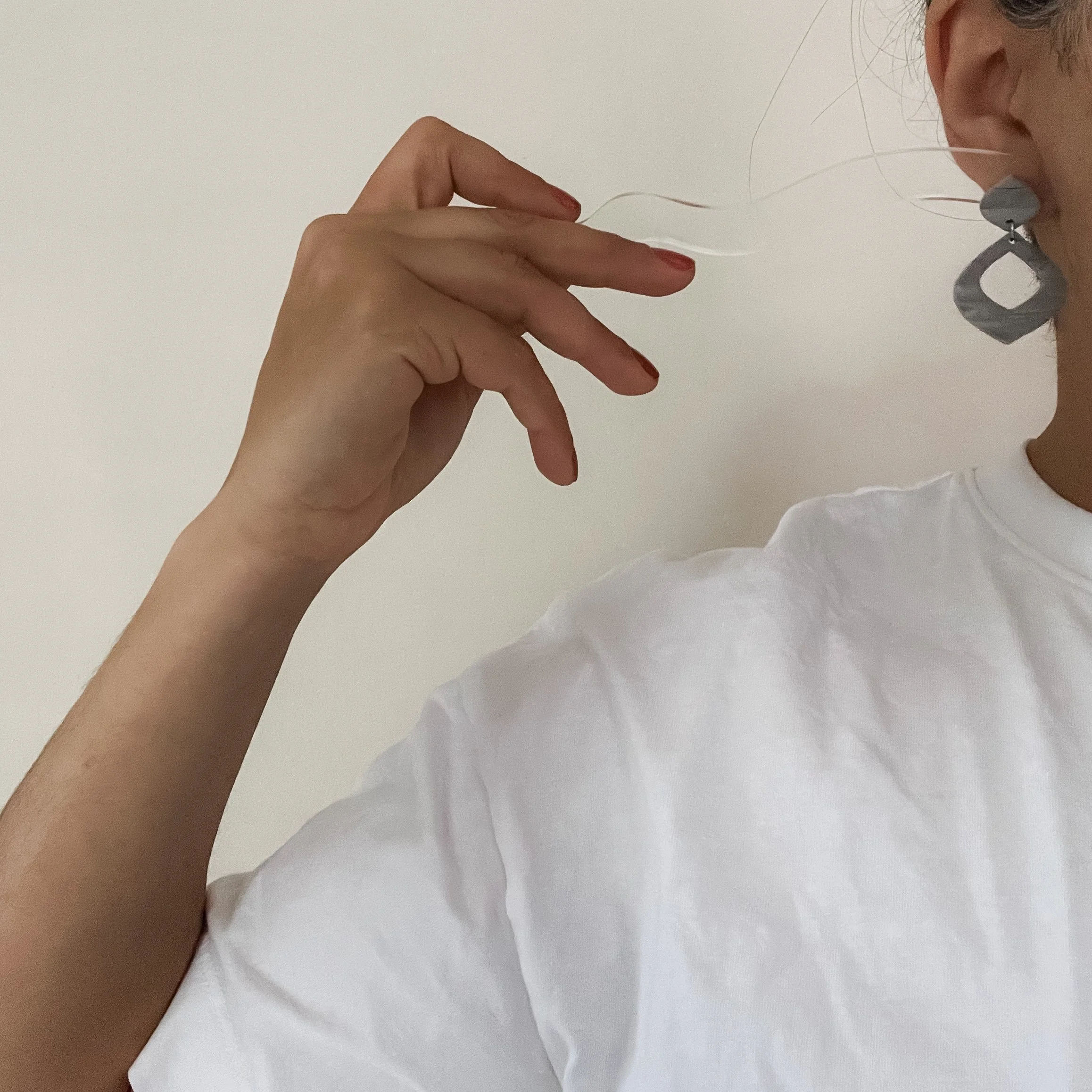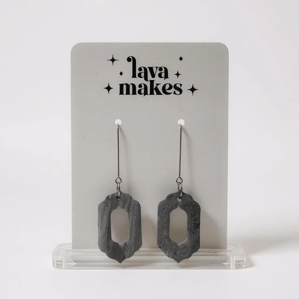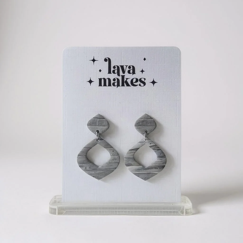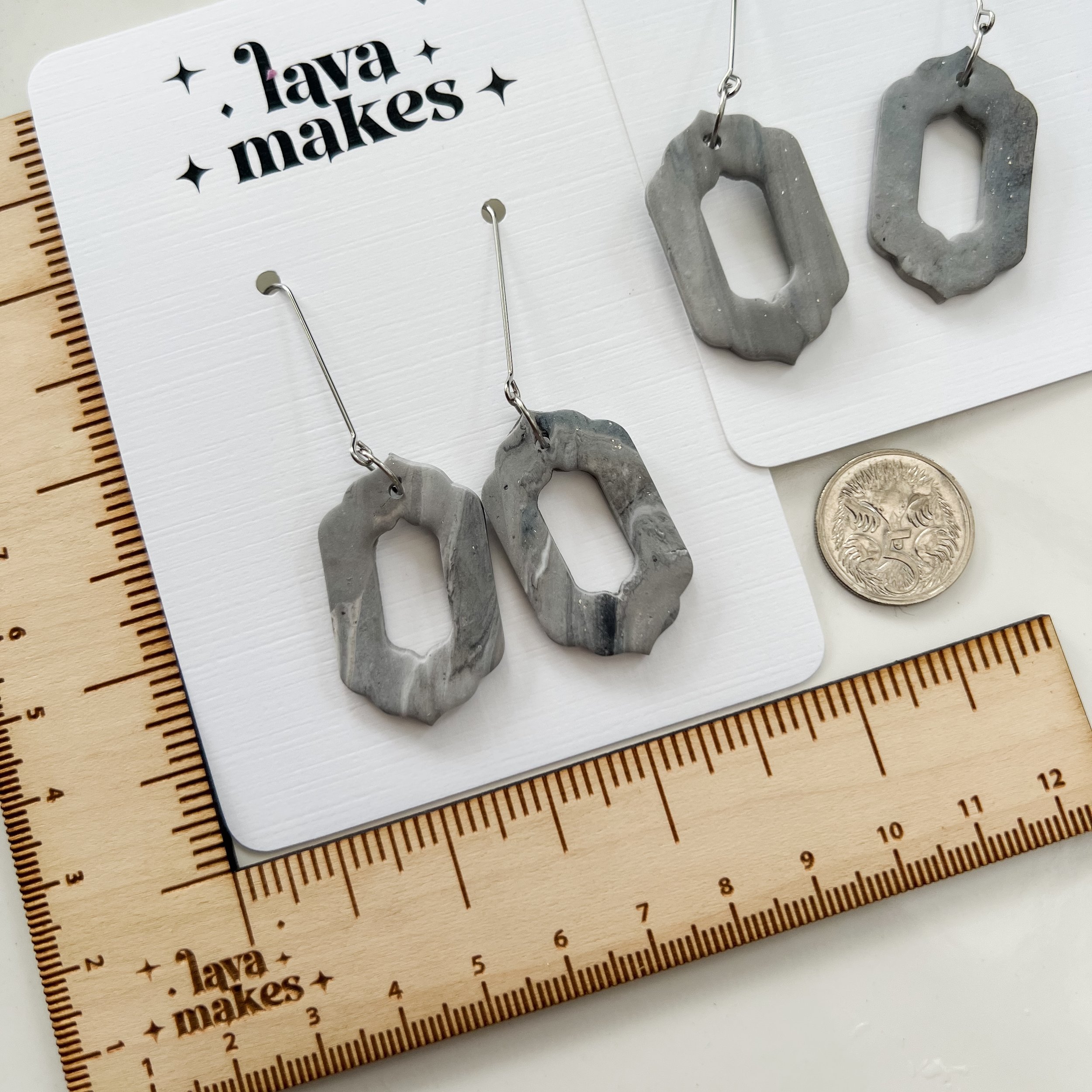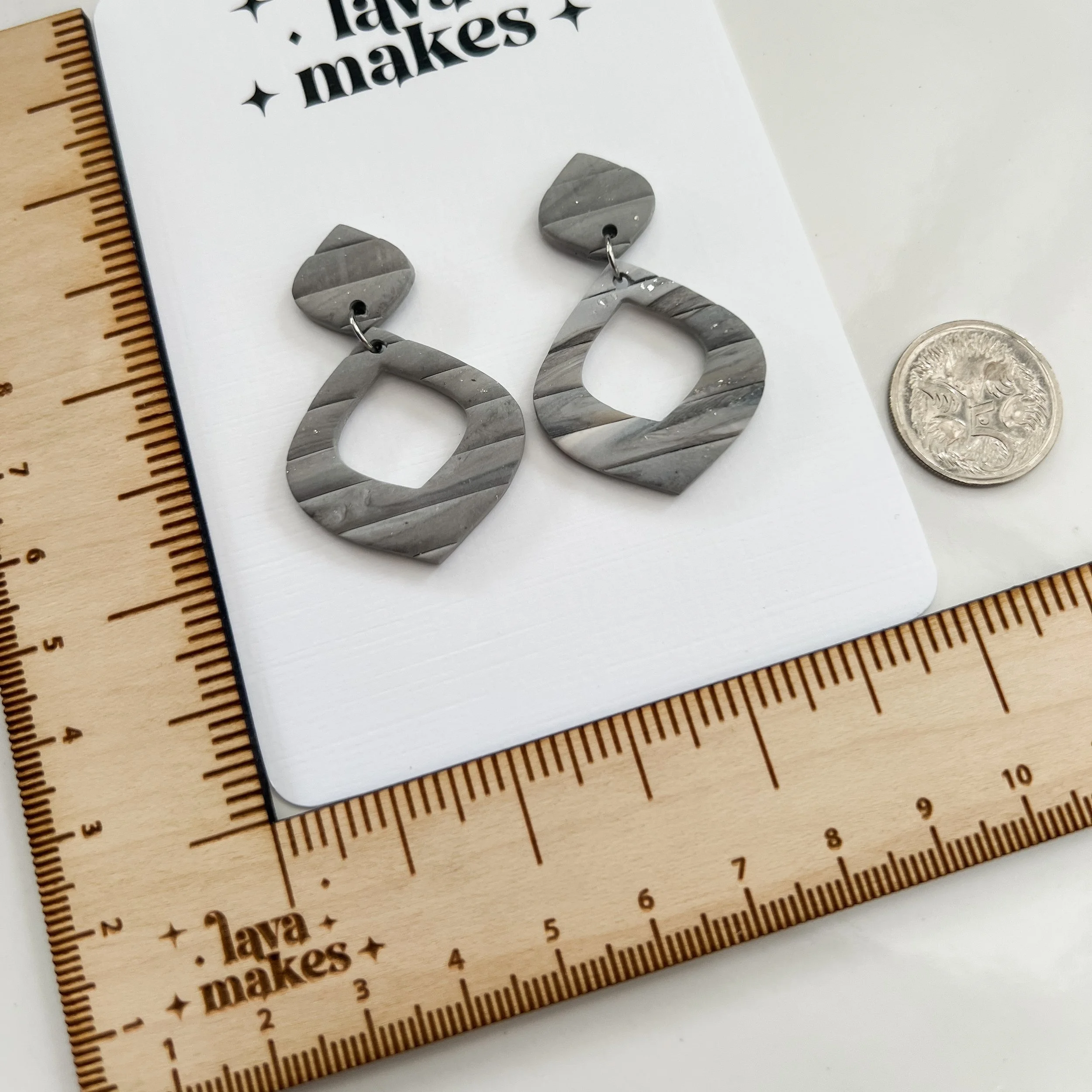 Abstract Terrazzo Drop Earrings in Smokey White & Gold
