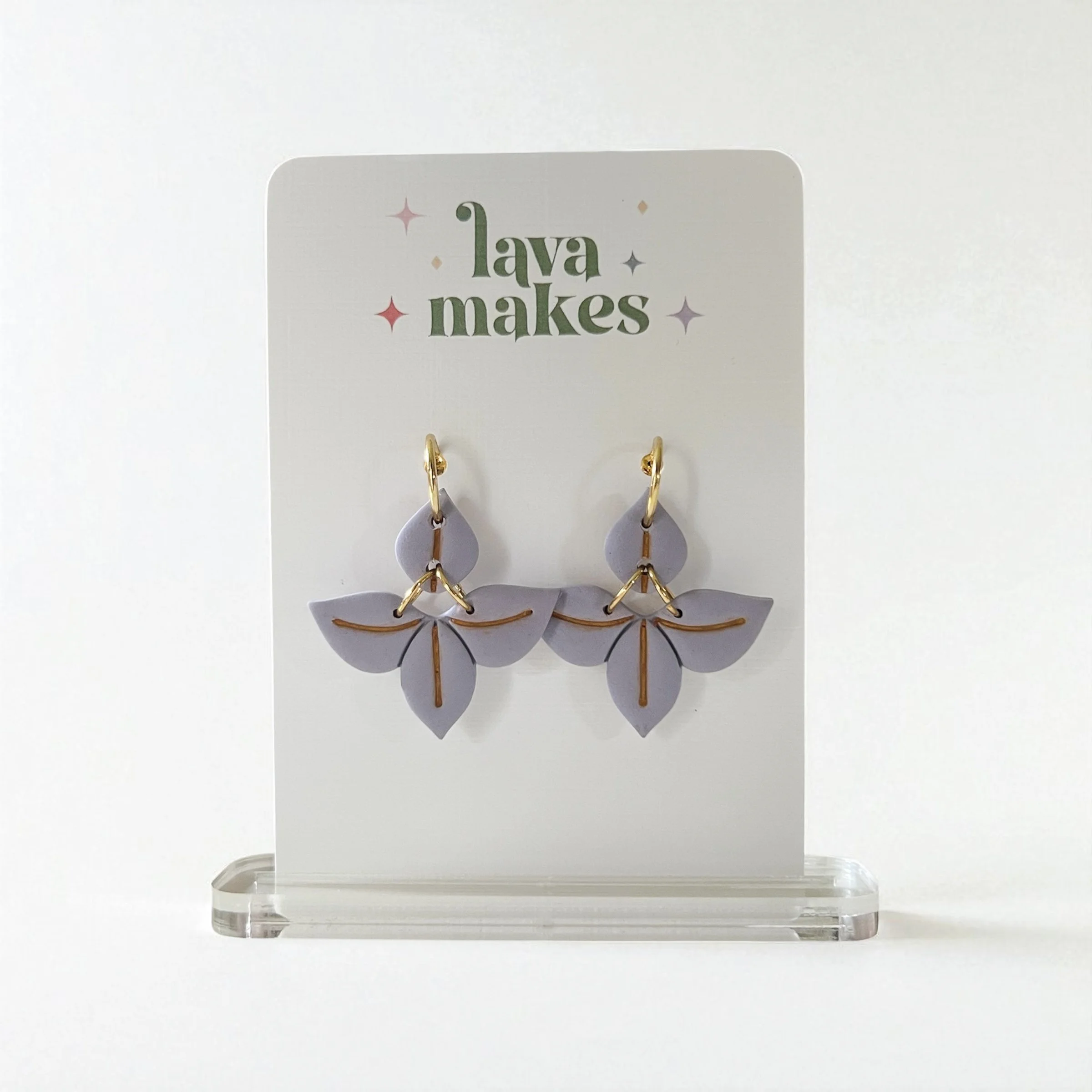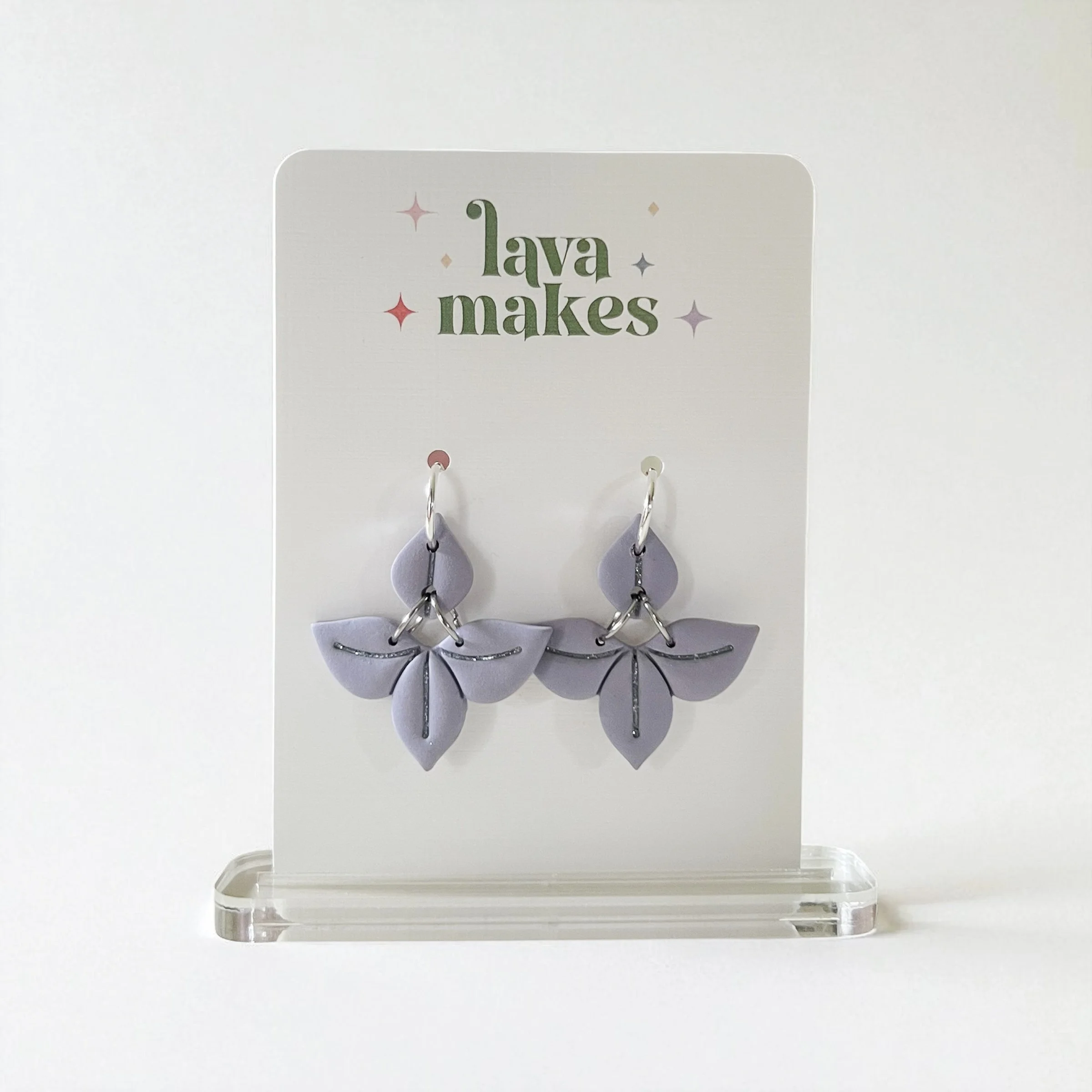 Three Daisy Dangles in Lavender Fog, Powder Blue and White