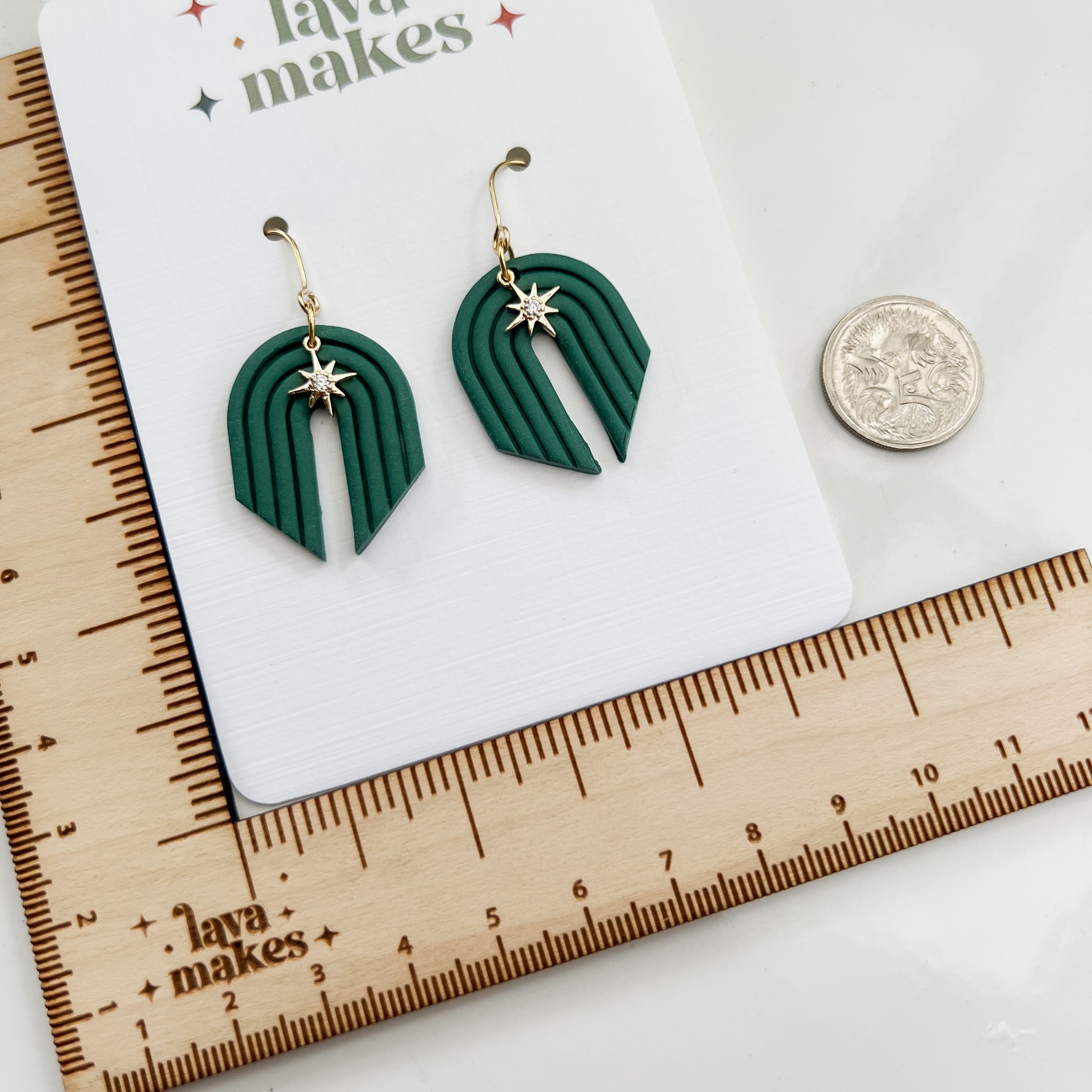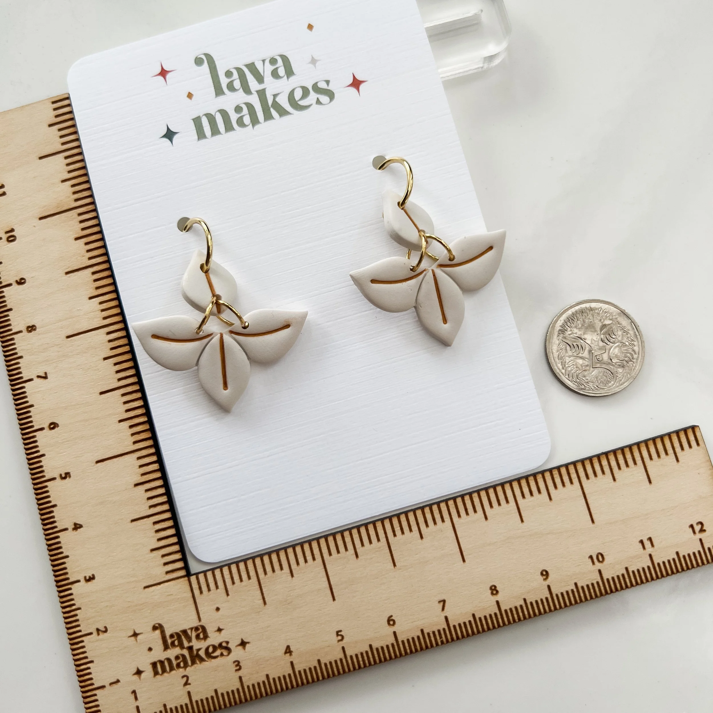 Arch Stud Dangles in Mossy Meadow with White Leaf Pattern