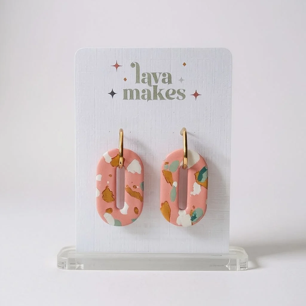 Thin Capsule Hoops in Abstract Pattern (Pink Rosewater Stud)